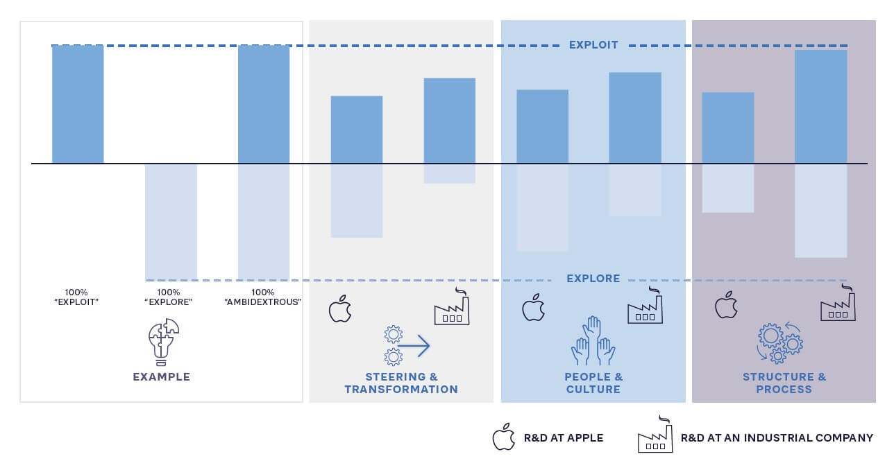 Comparing Apple R&D to a typical industrial company shows major differences in the ambidexterity balance (see Figure 3).