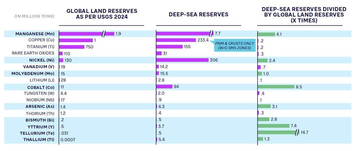 The manganese shortfall is even more extreme, with global supply needing to increase by a factor of 10 to meet the forecast 2030 demand. Given that China has a near monopoly on land mining of these critical minerals, many countries see supply diversification through seabed mining as strategically vital.