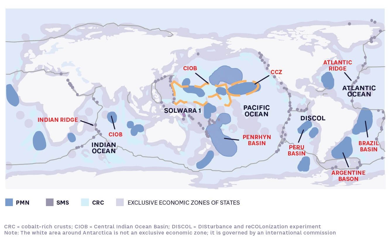 Figure 3. Known global mineral deposits relevant for seabed mining
